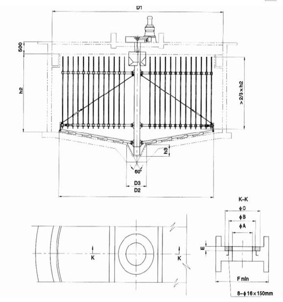 WNG系列濃(nong)縮池刮泥機爲(wèi)懸挂中心傳動(dòng),如圖1所示,由帶(dài)電動機立式減(jiǎn)速器、帶外齒的(de)回轉軸承、主軸(zhóu)、刮臂、刮闆、濃集(ji)栅條、穩流筒、控(kòng)制櫃等組成。